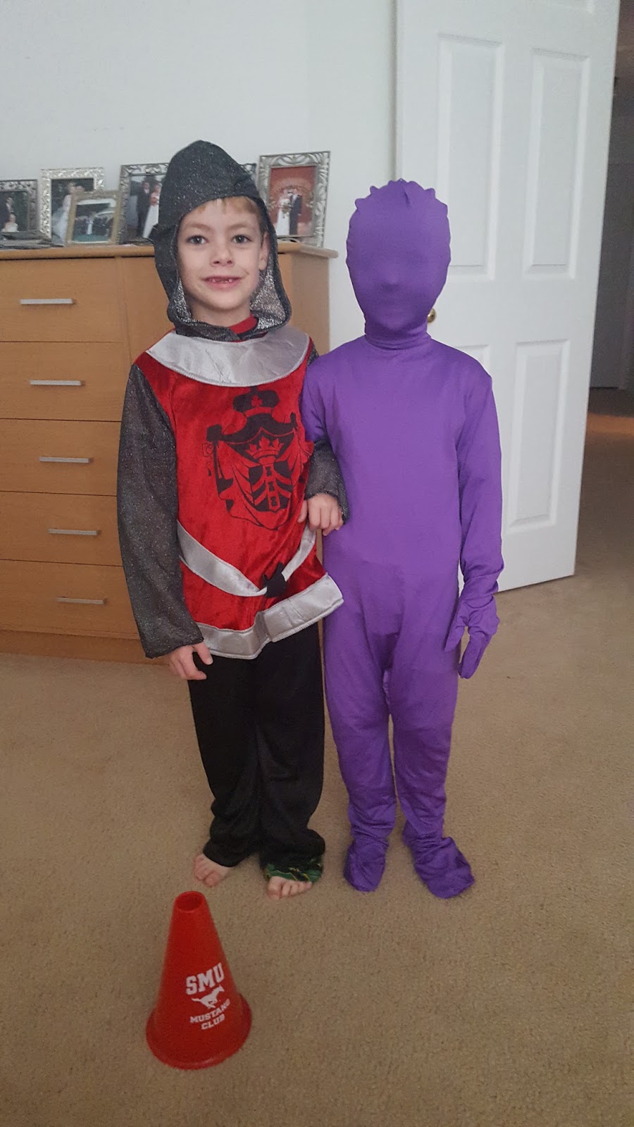 He knew exactly what he wanted to do and it required buying 3 pumpkins and multiple cans of spray paint. Yes, I'm the crazy mom who trusted my 7 year old with spray paint - he was closely supervised and outside in a well ventilated area.